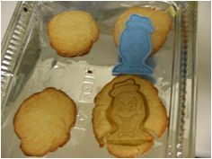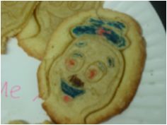 While the cookies are still warm take your cookie cutters and press them down firmly on the cookies. Once you've done this, you can carefully remove them and you should have a nice looking face (pending you wisely chose the Boo Berry cookie cutter rather than the Chocula one).