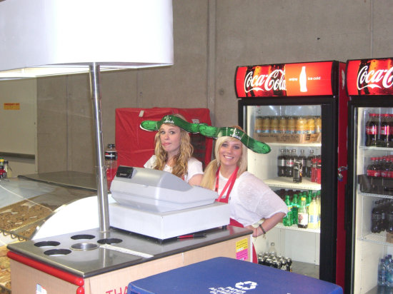 The lovely ladies of the nearby Mrs. Fields cookies shop wanted our pickle hats and they wore 'em all day long!