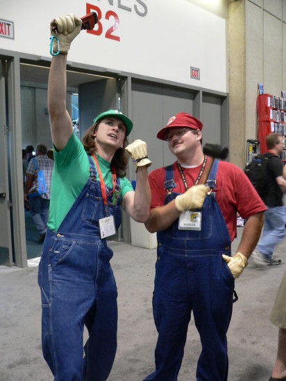 The Super Mario Bros. discuss plumbing fixtures at the San Diego Comic-Con.