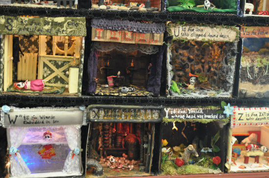 I really dig this house filled with dioramas starting with each letter of the alphabet... and everybody dying horribly in them.