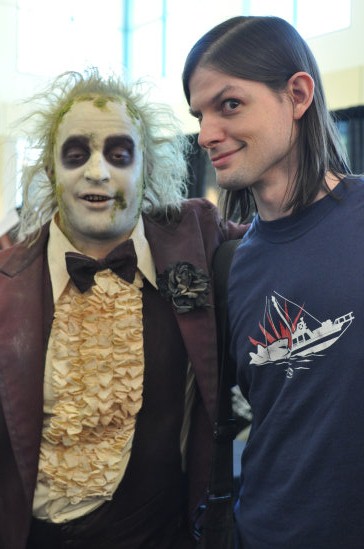 The makeup job is complete! It's Beetlejuice! Beetlejuice! Beetlejuice!