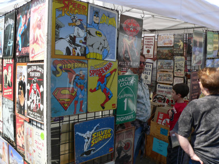 I dig these reproductions of old metal signs. Not sure I'd dedicate a whole booth to 'em, but to each his own.