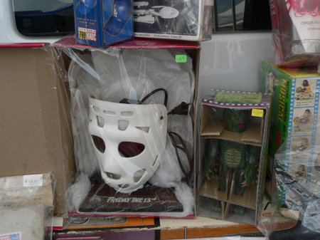 I'd love to go to a sale like this, were the prices pretty reasonable for the used MOTU figures? Saw quite a few there I was never able to pick up growing up (Ram Man, Hordak, Trap Jaw). Those masks looked great, too, and I'd love that Hook ad just to torment a friend of mine at work who refuses to see the movie cuz she insists "Peter Pan never grew up!" Also, now I gotta see if I can locate one of those lamps.