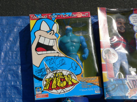 At first, I thought I found a gem in the form of an autographed Tick figure for 10 bux. Upon closer inspection,